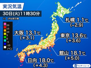 万博記念公園と主要都市の気温比較