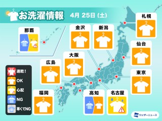 雨が降って乾きにくく、外干しは難しい予想です。部屋干しか、別の日をおすすめします。